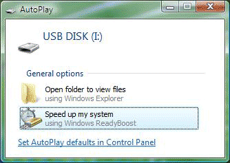 Usted sólo Inserte su unidad flash USB en tu sistema Vista y siga las instrucciones en pantalla para configurar y utilizar ReadyBoost. Si desea más detalles, consulte el artículo Cómo SuperFetch y ReadyBoost colaborar.