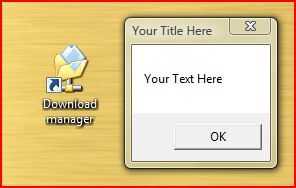 -Copia esto en Bloc de notas: x = msgbox ("Texto aquí", 0, "Tu título aquí")