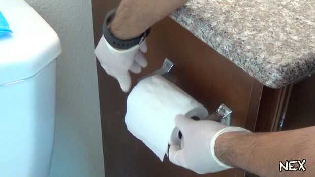 Coge el papel higiénico, coloque sobre una superficie y un rodar, Aplique pegamento en algunas plazas, rodarla para arriba y lo pones de nuevo. Cuando alguien quiere limpiar, el papel higiénico se deshagan. No será una divertida experiencia que es segura.