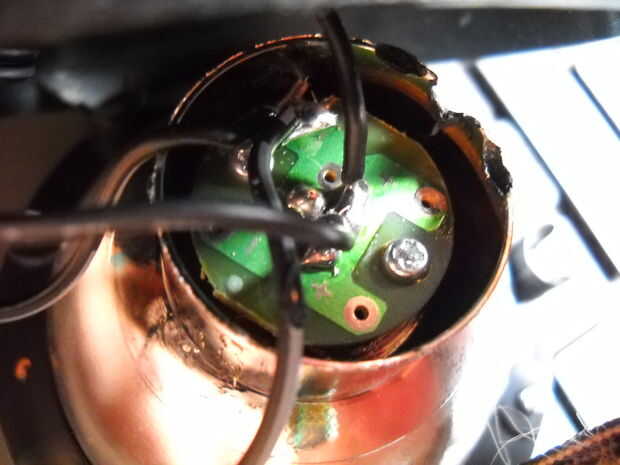 Tenga cuidado de no para sacar los rastros de cobre de las placas de circuito al poner el interruptor en el agujero que ha perforado