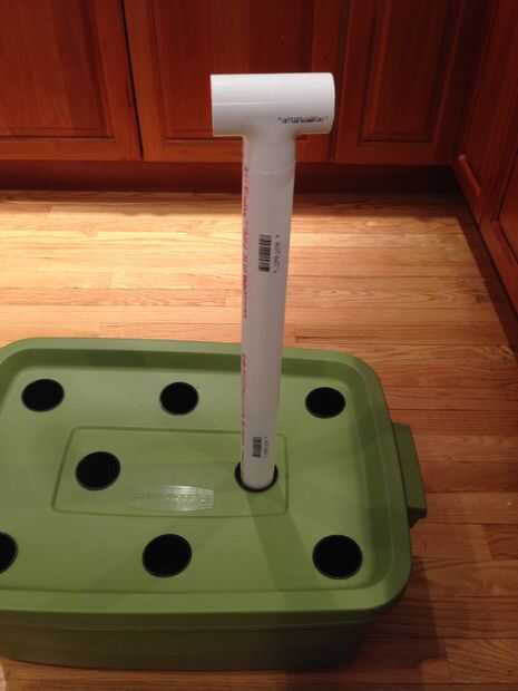 • Conecte el tubo de PVC de 1" y la t de PVC. Usted puede asegurar el tubo con pegamento pero lo encuentro bastante ceñido.
