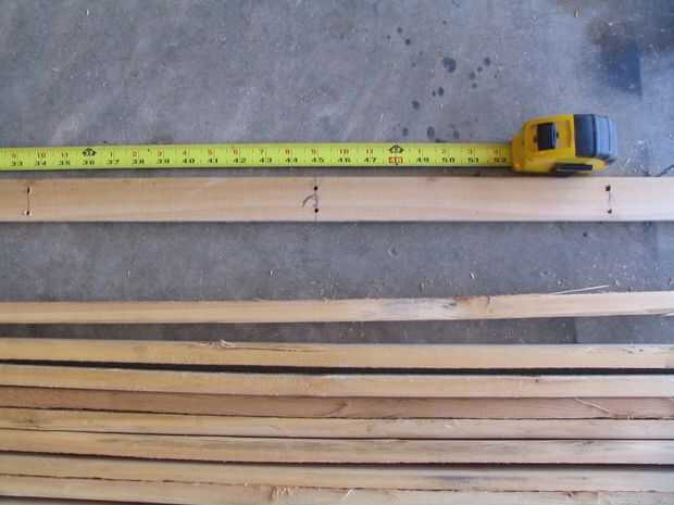 Tuve (9) 24" 1 x 2 izquierda después, así que puse uno como un refuerzo en la parte inferior con un poco de proyección. Luego hubo una izquierda más de 1 x 2 que fue justo lo suficiente para hacer el tirante medio.