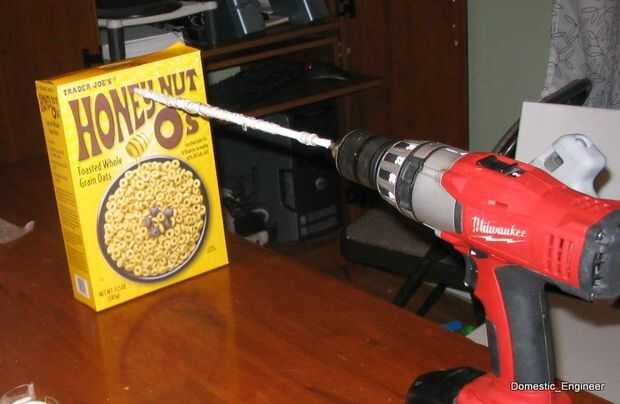 Mermelada de un extremo de la varilla sobre la broca de tornillo. Meter un tornillo a través de una caja a la misma altura, para apoyar el otro extremo de la varilla.