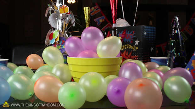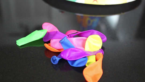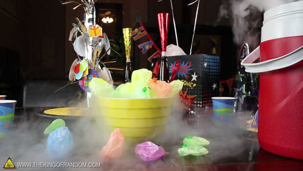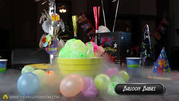 Levantamiento de una capa de la misteriosa niebla que fluye, sus pequeños bebés globo, comienzan a crecer justo ante tus ojos, desbordando y que cubre la mesa.