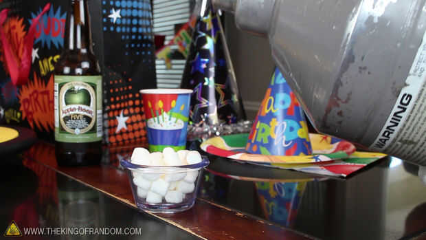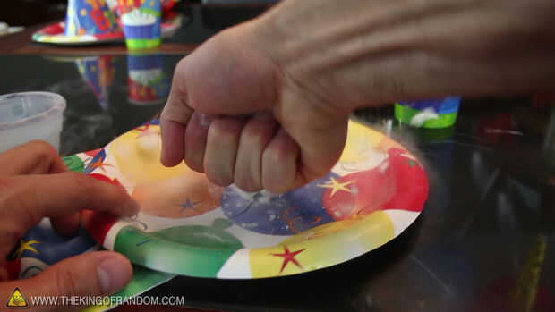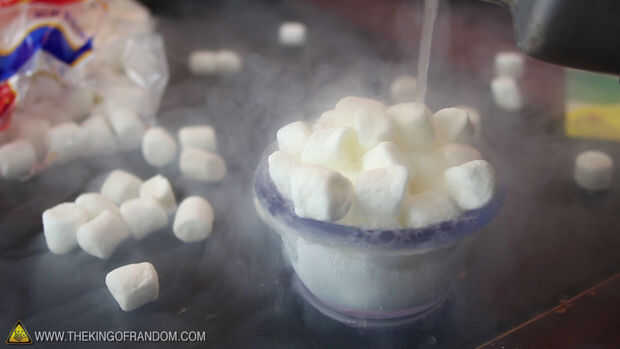 Ahora, si usted flash-congela un malvavisco más grande, en lugar de comerlo, prueba colocando en un plato y dándole una bofetada. A romper en pedazos de 1 mil.