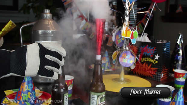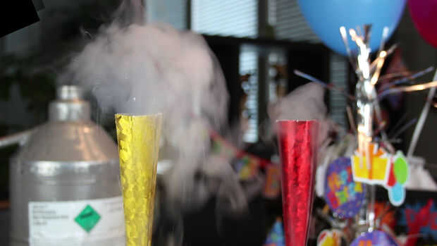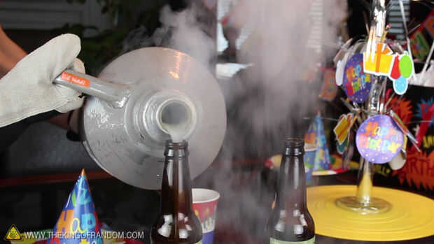 Ahora vierta con cuidado el nitrógeno líquido, por lo que la botella es un cuarto completo, seguido de una inyección de agua caliente.