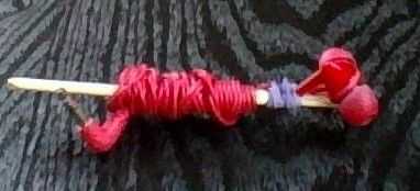 Haz un popsicle stick y enrolle el cable alrededor de ella, así que no hay ninguno que cuelga hacia abajo. Luego, use una banda elástica para asegurar los brotes alrededor de la palanca, como se muestra en la imagen.