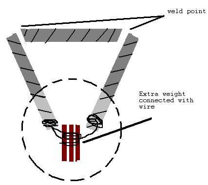Para agregar peso, simplemente tomar sus platos, desechos, etc. y sujete sin apretar a la parte inferior de la manija con alambre. No tiene que ser estrecha, sólo tiene que estar centrada entre los brazos en la parte inferior y no cuelga demasiado.
