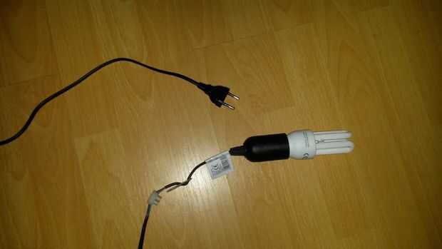 La bombilla se puede ver, está conectado a una toma de corriente. Se trata de una toma de corriente normal, tal vez sabe de zonas de construcción.