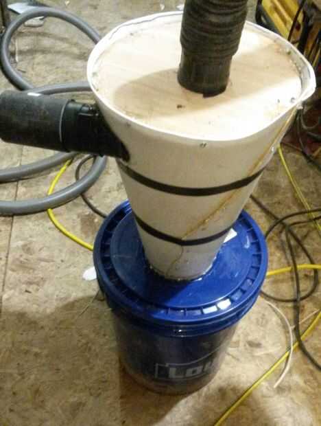 Esta es una configuración bastante básica que se puede hacer en un par de horas. He visto muchos tipos diferentes de estos hechos por otras personas, algunos son diseños muy extensos y complicados. Lo que encontré es que hice algo que funciona quitando el 99% del material en un cubo antes de que termine para arriba en el vacío. Lo que significa un filtro limpio sin nada en el vac por un largo tiempo. Y es simple en concepto. La imagen de lo creado es antes he añadido otra sección del cubo por debajo del azul uno. Tenía un viejo basurero plástico que era genial porque es un plástico resistente.