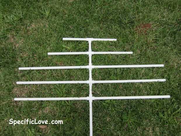 Para el primer árbol, utilicé una combinación de tubo de 1/2 pulgada, conectores de 4 vías y un conector en T en la parte superior.