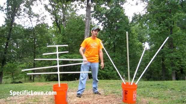Me corte varias tuberías en secciones de 5 pies y luego los colocó en diferentes ángulos en el cubo.