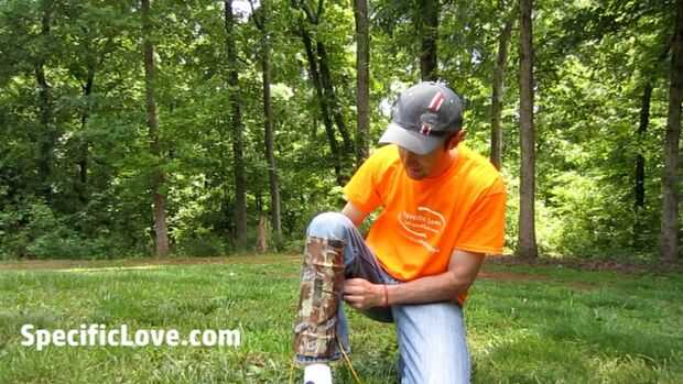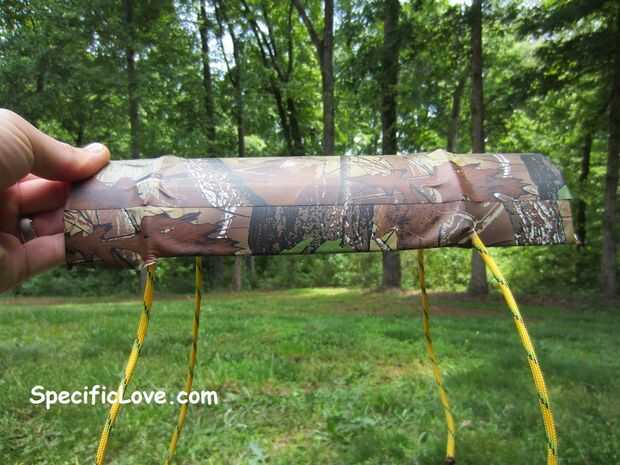 Entonces utilicé algunas cintas para atar la cuerda en la parte superior e inferior dejando largo suficiente para atar alrededor de mi pierna.