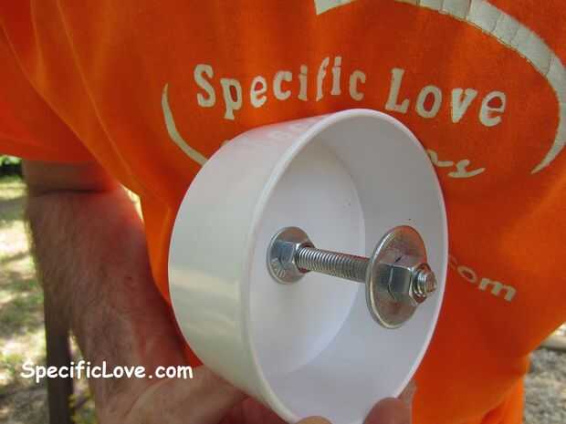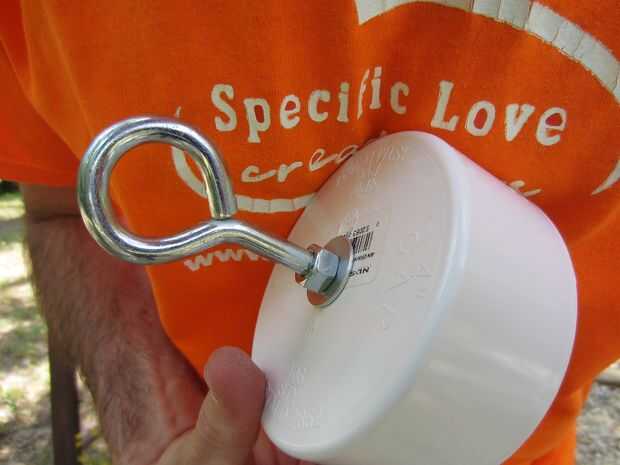 Luego colocar un perno de ojo a través de la tapa, usando una tuerca y una arandela en la parte superior para mantenerlo plano.