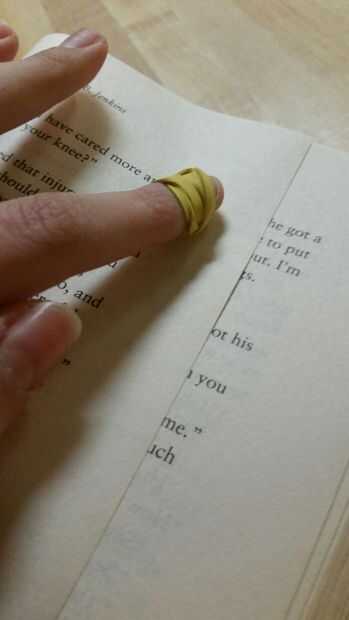 ¿No es a veces difícil de pasar las páginas en los libros nuevos? Bueno, con bandas de goma, no más. Sólo envuelve una banda elástica alrededor de su dedo indicador, y se le dará un agarre de goma. Sólo asegúrese de no poner en demasiado, o podría cortar la circulación de la sangre.
