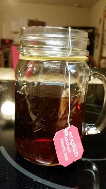 No sé ustedes, pero siempre se desliza la cadena del bolso de té en mi taza de té. Por lo tanto, sólo hay que poner una goma alrededor de él y de la Copa. Funciona tan bien.