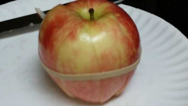 El interior de mis manzanas siempre recurren marrón antes de comer, especialmente si se embalan en rodajas en mi bolsa de almuerzo. Nunca más con este práctico truco. Simplemente cortar la manzana y mantener el núcleo y si cae aparte, ponerlo de nuevo juntos, casi como un rompecabezas. Luego Envuelva una cinta de goma alrededor de él; y listo, su apple no pondrá marrón.