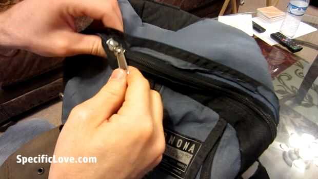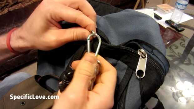 Utilice un mosquetón para vincular a uno de tus cremalleras y colgar dentro de su bolsa.