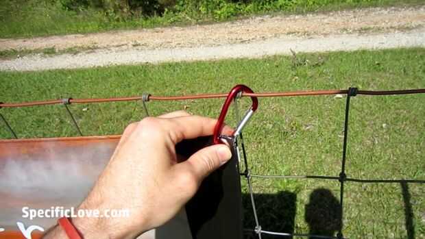 Los mosquetones son grandes en la celebración de un gran letrero en una cerca. Van y verdaderamente fáciles.