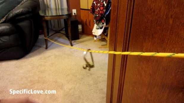 Colgar los juguetes desde el mosquetón y que Deslice hacia abajo la cuerda.