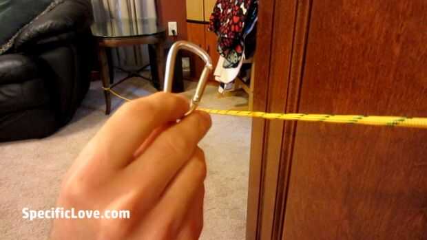 En primer lugar atar alguna cuerda en un ángulo entre dos superficies.