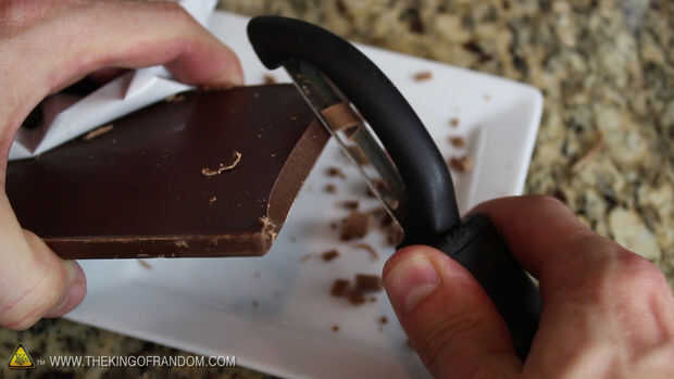 Afeitarse con cuidado hacia abajo el lado de la barra de caramelo y verás crea una guarnición decorativa de chocolate.