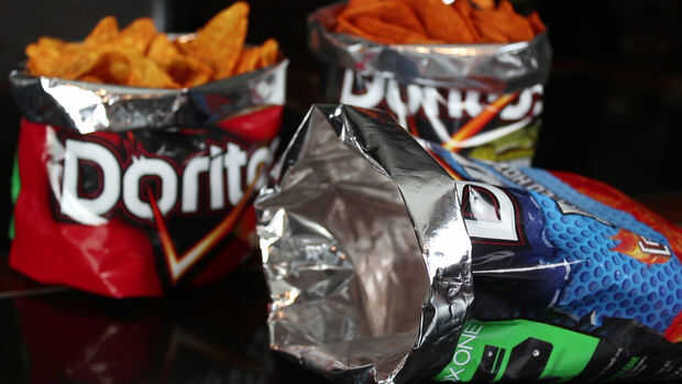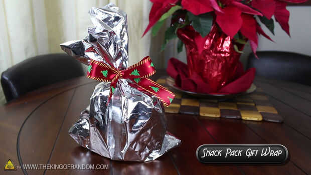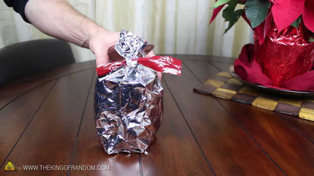 Agarra una bolsa vacía de patatas fritas, y la búsqueda alrededor de la casa para algo que creo podría funcionar como un regalo.