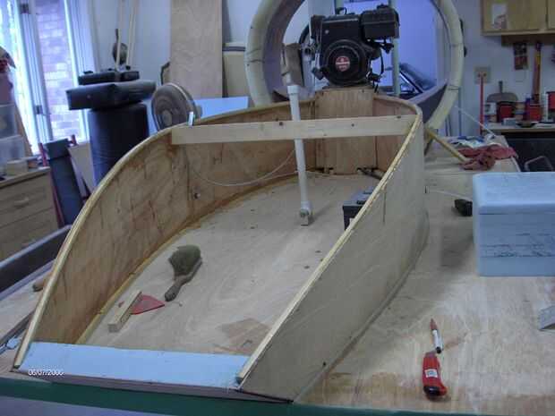 Empezar por trazar la forma básica con una pluma de marca y roscado 3/4 acciones para la línea. El 1/8 madera contrachapada se dobla fácilmente para adaptarse a la forma. Luego sujetar y pegar los listones de 3/4" en la parte superior. Montar un 2 x 4 entre las partes para formar un tablero de la rociada. Este es un buen momento para conectar el cable del acelerador del tablero o las tiras laterales. Después pusimos una correa conectada a la llave en el tablero. Este es un requisito si desea ejecutarlo en cualquier razas sancionadas. Tapa con una hoja de madera contrachapada y ajuste poco trozo de espuma para formar la pieza de punta. Pase los cables de dirección de los lados y conéctelos al palo. Hacer un pequeño asiento que se siente cómodo. Tenemos nuestro habían acolchado con algún vinilo de espuma y chatarra. Pintar la nave entera con una pareja capas de alguna pintura que tenga puesta alrededor. Elegimos blanco porque se mantiene fresca incluso en luz del sol directa. Un poco de color ajuste es único para usted y realmente lo hace destacar. Ahora que está pintado es un buen momento para añadir una pantalla para detener el díscolas manos y los brazos entren en el área de apoyo. Podría arruinar un buen día. Tuvimos algunos izquierda sobre alambre de esgrima y formó una guardia de eso.  También hemos añadido cuatro asas de elevación en las esquinas para facilitar la elevación y apagar un remolque.