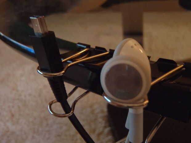 Tiene un montón de hilos mezclados para arriba en su computadora? Clips de la carpeta de trabajo como organizadores excelentes! Dependiendo del tamaño de la cuerda, utilice diferentes clips tamaño.