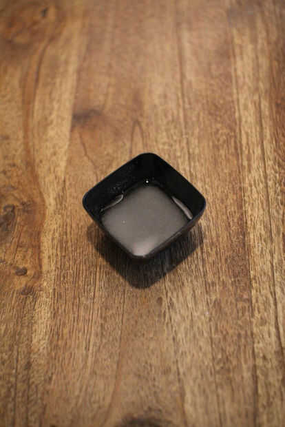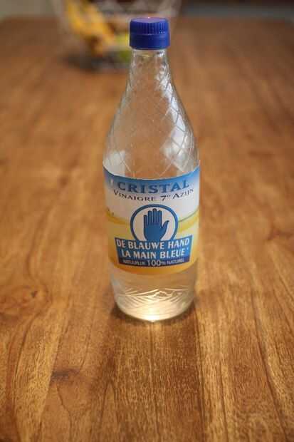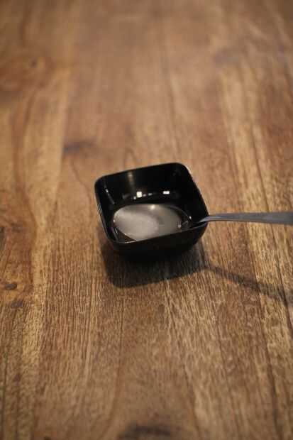 -Agregue 2 cucharadas de vinagre blanco a la taza pequeña.