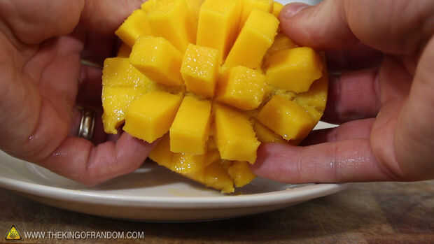 Schnappen Sie sich eine Mango und trate diesen kleinen truco. Sorgfältig schneiden Sie die beiden Seiten der Frucht, und halten ein Stück en mano der. SIE können leicht geschnitten ein paar Zeilen vertical, und ein paar mehr auf, das bis Muster ähnelt einem Schachbrett. Nun nehmen Sie es mit beiden Händen und sanft von hinten zu schieben. Du wirst sehen, mundgerechte hin de bis Stücke Pop, und sie sind bereit zu essen. SIE können mit einem Löffel en eine Schüssel reiben, oder einfach nur essen sie rechts von der Schale. Es ist schnell, einfach und sie werden nicht en den Zähnen stecken bleiben.