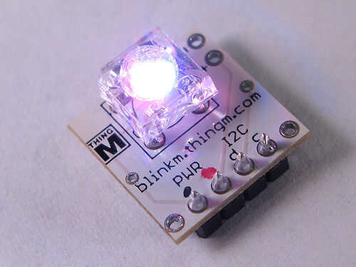 2. un LED smart BlinkM - hecho por ThinkM y está disponible de muchas fuentes. Yo tengo la mía desde el Maker Shed tienda para $12,95
