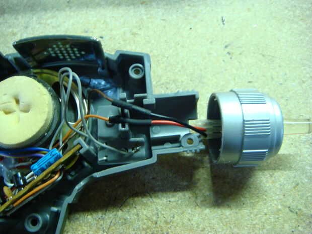 Los dos cables que fueron terminados en las dos lengüetas de metal de la lámpara son los dos cables que va a utilizar. En mi phaser, el cable naranja era el positivo y el marrón es el negativo. Utilice un multímetro para comprobar y verificar la configuración. Suelde los dos cables a los conductores apropiados en los BlinkM y cubierta con la tubería del encogimiento o con cinta aislante. Deje suficiente cable para la tapa del barril con lo BlinkM sentarse a las afueras del cuerpo del barril phaser. La mejor parte de este mod es que todos los voltajes coincidan sin ninguna modificación.
