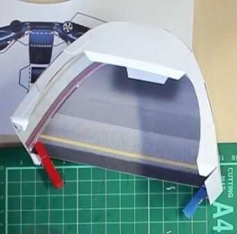 La cueva consta de dos partes, el fondo con el techo y el piso. Se dobla adentro hacia fuera, lo que significa el fondo impreso en el interior. Pega una aleta en un momento y no fijar las dos piezas delanteras todavía. Necesita poner la transparencia a través de este espacio más adelante.