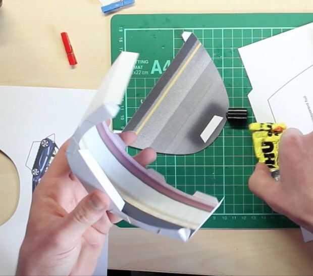 Vamos a empezar con la cueva. En general, antes de pegar todo junto, rasque todas las líneas de plegado con un cortador o sus tijeras. Que garantiza buen pliegues. Usted no puede ver en el video porque es aburrido del infierno. Lo hice antes de cortarlo hacia fuera, y usted debe hacerlo, también.