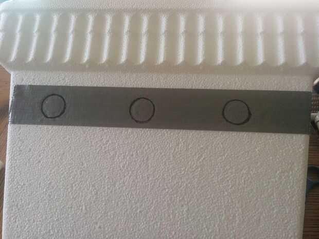 Ahora, tomar una sección de tubería de 3/4" PVC y traza 3 agujeros en aproximadamente igual distancia unos de otros, en la cinta.