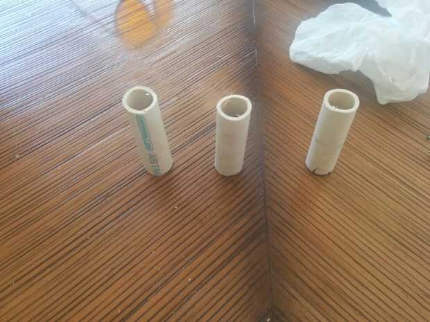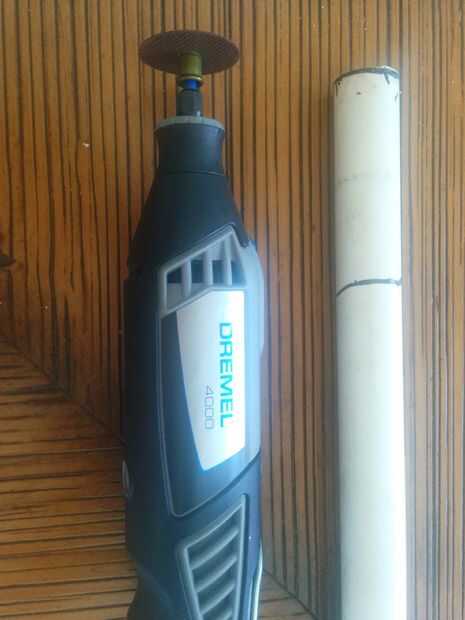 Tomar el tubo de PVC y mide 5 pulgadas, luego marcar con el rotulador. Ahora coger la Dremel (¡ no olvide sus gafas de seguridad!) y corte el PVC en esa marca. Ello esta parte 2 veces más 3 total tubos de PVC de aproximadamente 5 pulgadas de tamaño.