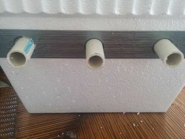 Tome los tubos de PVC y colóquelos en sus orificios. Tomar pequeños cortes de cinta y forma un sello alrededor de cada uno de los de PVC al lado de la nevera.