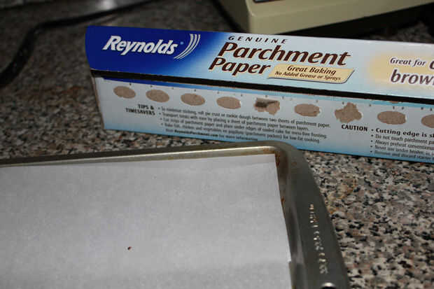 Mientras esperas, línea de la bandeja para hornear con su pergamino o una funda de silicona, o si no tienes ninguno de esos, sólo puede engrasar muy bien. Personalmente, yo no soy un fan de caramelo grasiento, pero a cada su propio...