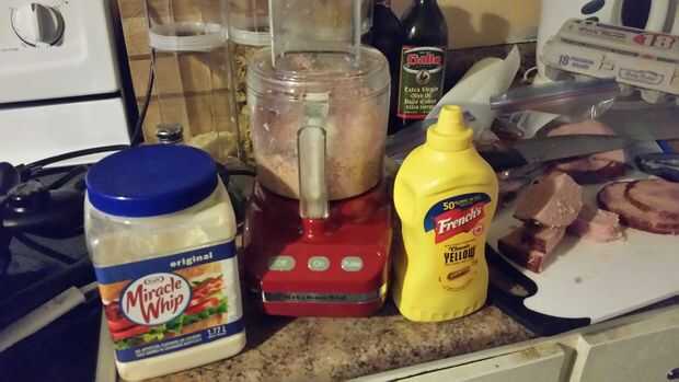 Parte del jamón cortados en rodajas fina de carne de almuerzo y el resto que hice en ensalada de jamón con un poco de mayo y mostaza. Comidas para una semana!