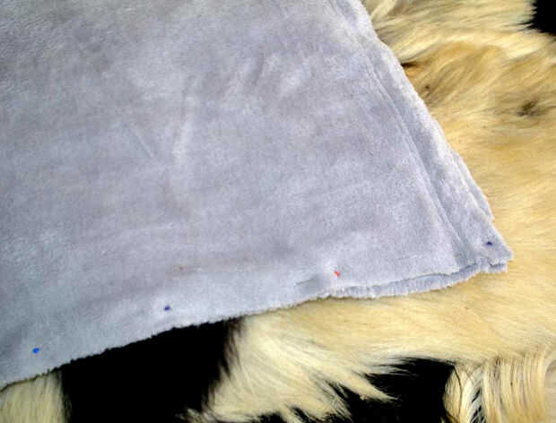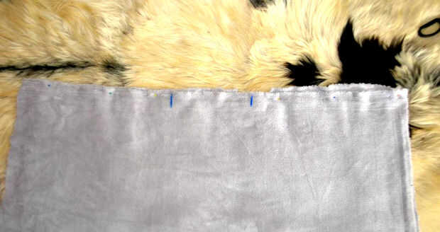 Pin los bordes laterales de los rectángulos juntos revés, dejando un espacio de pocas pulgadas exactamente en el centro que por los daños. Cosalas juntas.
