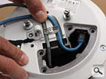 Conectar el cable de parche Dotworkz 5502-491 que proporcionará energía de la cámara; Acople el conector RG45 de un cable Ethernet CAT5 a la cámara; Ambos cables de alimentación a sus respectivas ranuras.