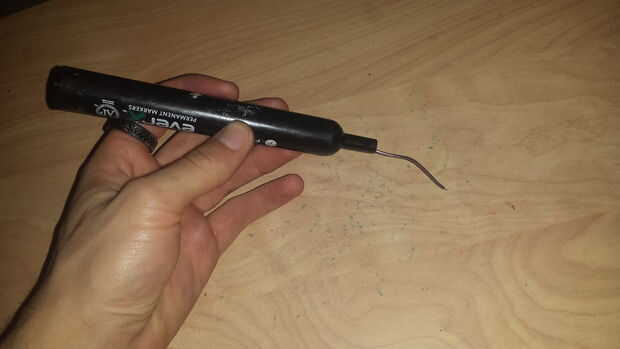 una pluma click normal se convierten en un depósito de soldadura, un poco de soldadura sale con cada clic. Esto toma ventaja del mecanismo de la pluma que realmente gira. Todavía puede usar el lápiz que una pluma.Inspirado por la más simple (y en cie