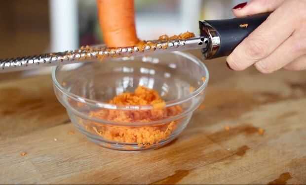 Utilizando un rallador fino (tamaño similar que desea utilizar para la cáscara de un limón), rallar la zanahoria.