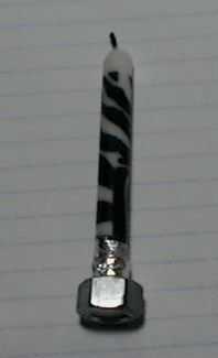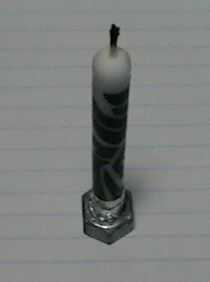 Para mantener la vela vertical y anclado por gravedad a la parte inferior del cristal, he utilizado una tuerca hexagonal de rosca. El interior diámetro de la tuerca fue un poco más grande que el que la vela envuelta en una tira de papel de aluminio alrededor de la base de la vela y luego rosca la tuerca de la vela.
