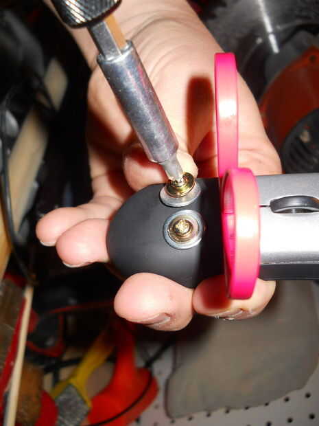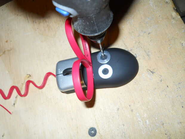 Encontrar una buena posición para los ojos. Hacer dos agujeros e inserte las arandelas y los tornillos.