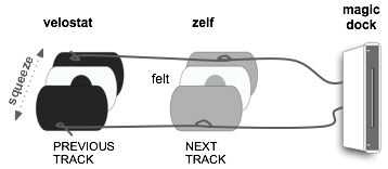 En este proyecto utilizamos ambos tipos: dependiendo de qué par presione, la resistencia combinada puede variar de algunos cientos ohmios a 100.000 ohmios. El circuito pequeño lee la diferencia en la resistencia y convierte a los pulsos enviados al iPod.