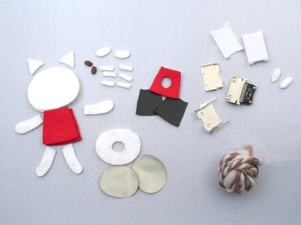 Quiere hacer dos sándwiches de interruptor: cortar los tejidos conductivos a la forma que desee y coloca un fieltro en el medio. Tendrá agujeros en el fieltro a través del cual los tejidos conductores en contacto con cuando usted apriete.