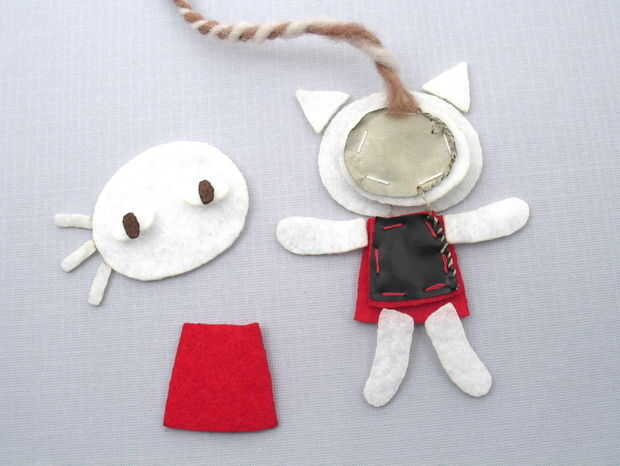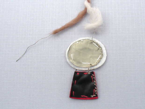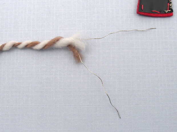 Cada uno tiene un núcleo conductor, así que tendrás que retire el hilo para exponerlo. Coser a la pieza superior y el otro en la parte inferior. No importa que el hilado va a qué pieza (zelf).