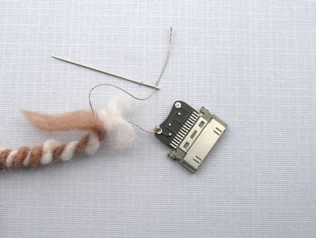 No importa qué subproceso se va en qué agujero. Bucle varias veces a través de cada agujero hacen un ajuste perfecto. Asegúrese de que llena completamente el agujero. Ayuda a usar una aguja para pasar el hilo a través de.